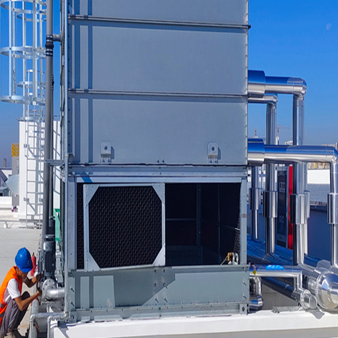 防凍:在寒潮期間,環(huán)境溫度可能會很低,導致設(shè)備出現(xiàn)凍結(jié)、凝固、析出結(jié)晶等現(xiàn)象。因此,需要確保設(shè)備在寒潮期間保持適當?shù)臏囟?,避免超出正常工作溫度區(qū)間,對于正在使用中的設(shè)備,需要開啟循環(huán)水塔或冰水機的電輔助加熱功能,配有散熱風扇調(diào)節(jié)器的循環(huán)水塔,可以調(diào)節(jié)水塔的散熱扇的開啟溫度,另外,為了降低循環(huán)冷卻水的凝固點,可在循環(huán)的水路中添加適量的乙二醇或防凍液,一般按量添加約35%即可。
